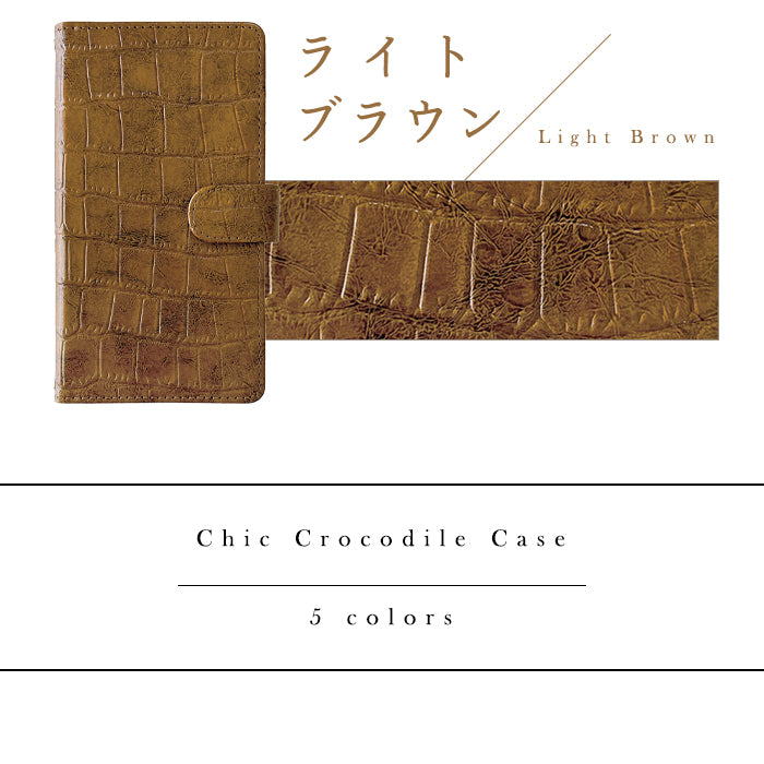 艶やかなPUレザーにクロコダイル柄の型押し加工を施した手帳型ケースです。