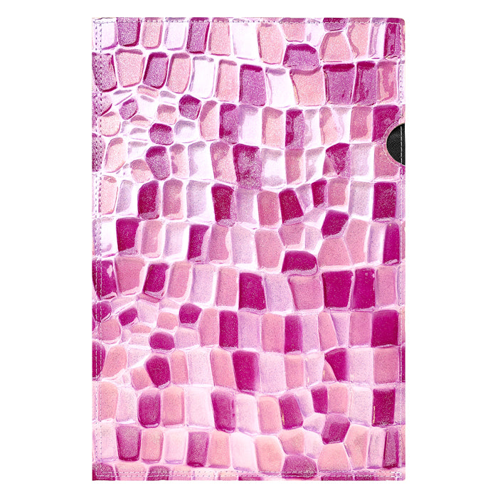 ラメの入った、エナメル加工を施した本革生地を使用。