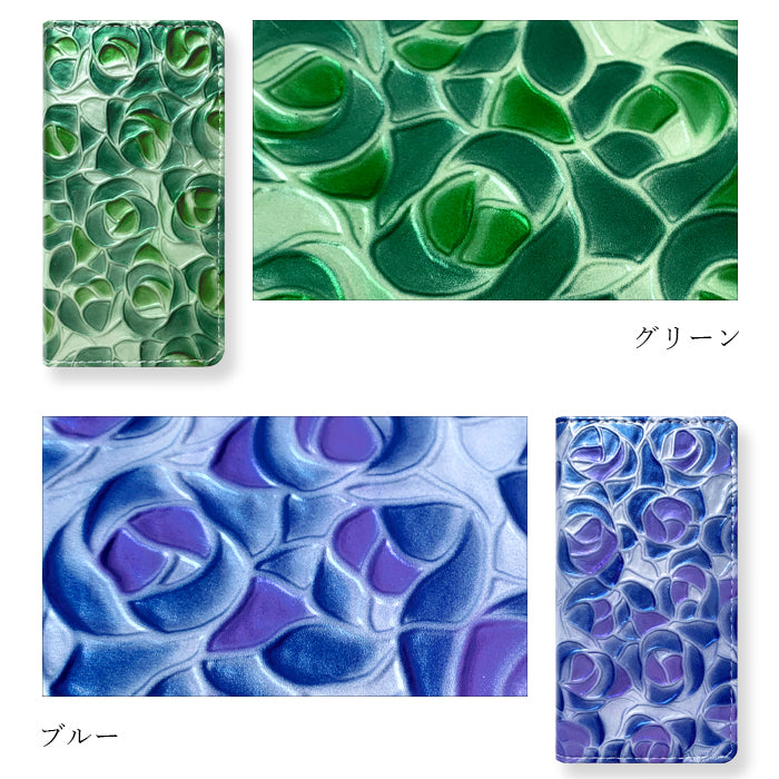【 上品 エナメル 高級 華やか 大人 かわいい 可愛い オシャレ お洒落 レディース 女性 ピンク パープル グリーン ブラウン 紫 緑 青 茶色 バラ 薔薇 フラワー 花 型押し 二つ折り ハンドなし ケース カバー 手帳型 手帳 手帳型ケース 手帳型カバー スマホケース スマホカバー 】