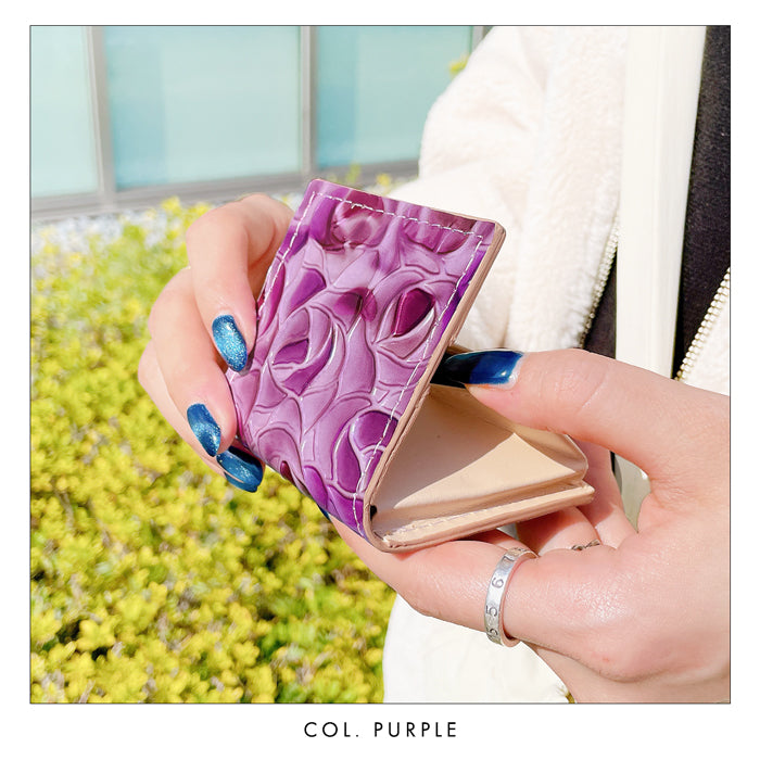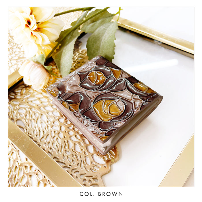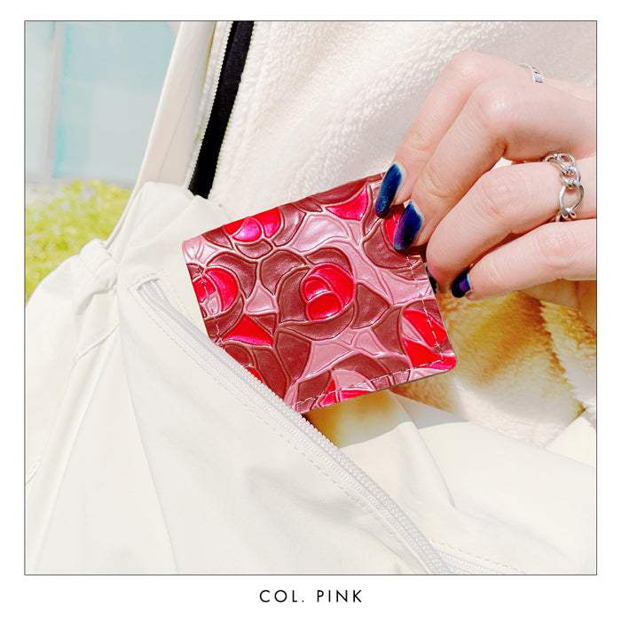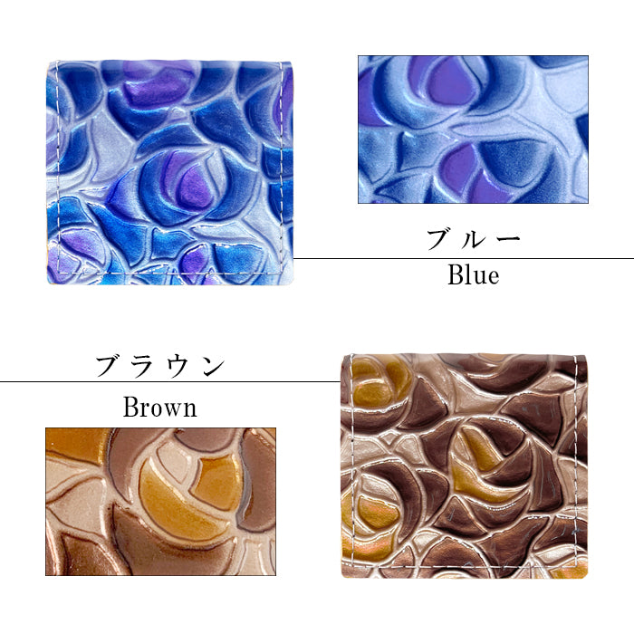 バラの柄が型押しされた本革にエナメル加工を施した生地を使用しております。