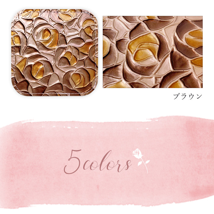 バラの柄が型押しされた本革にエナメル加工を施した生地を使用しております。