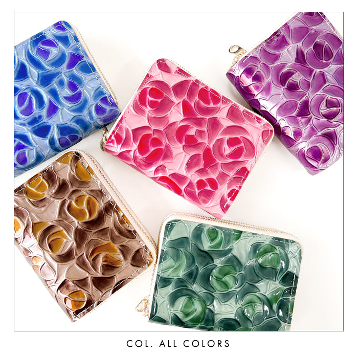 上質な華やぎ。 日常を彩る、バラ柄エナメル本革財布。 立体的なバラの型押しが施された本革に、艶やかなエナメル加工をプラス。 ダブルファスナー仕様で、仕切り付きのコインとじゃばら式カードポケットを搭載。 |