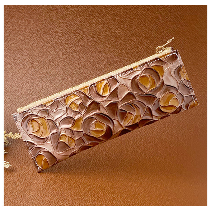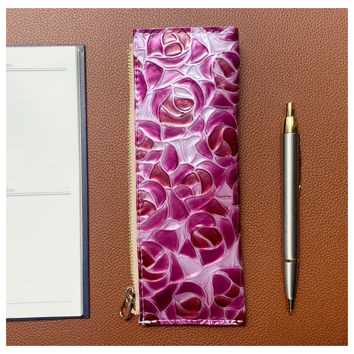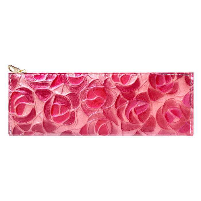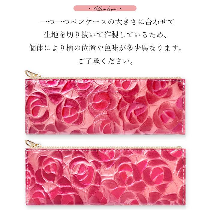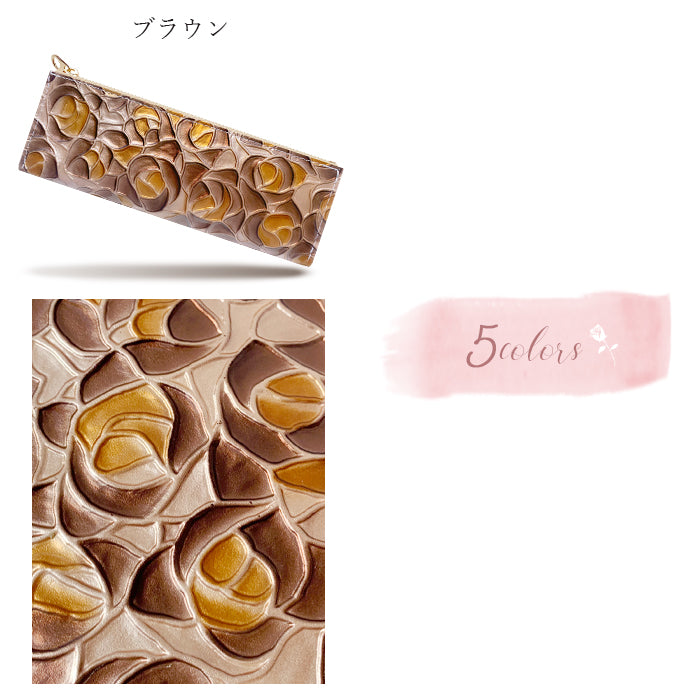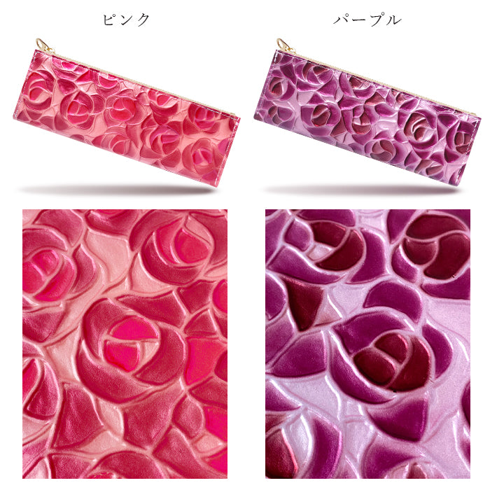 バラの柄が型押しされた本革にエナメル加工を施した生地を使用しております。