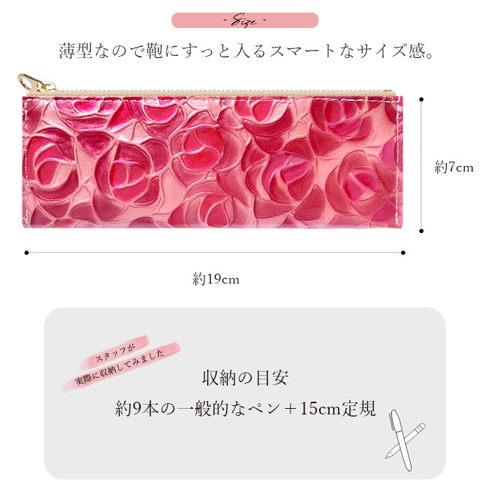 ペンケースとしてだけではなく、USBメモリーやアクセサリーなどの小物の収納にもピッタリなケースです。