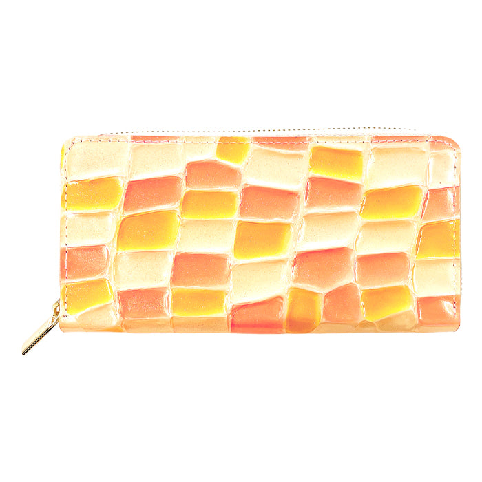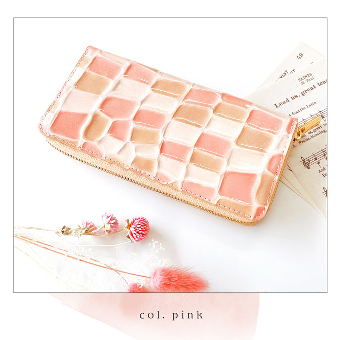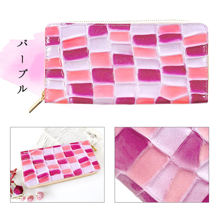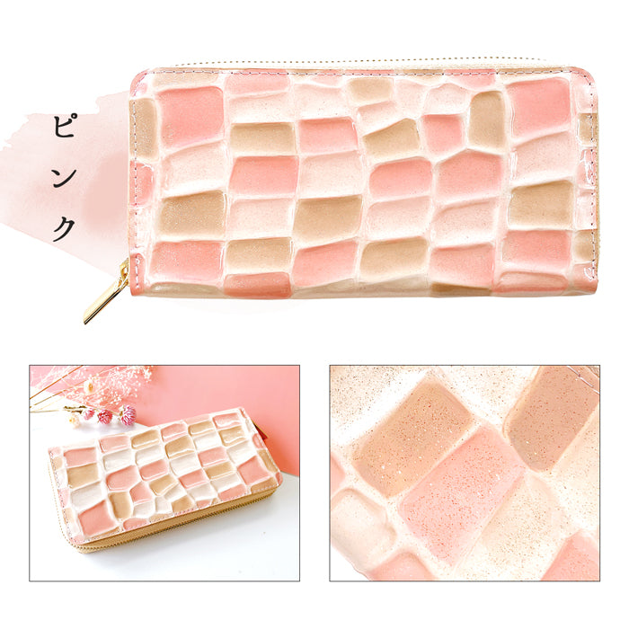 ラメの入った、エナメル加工を施した本革生地を使用。