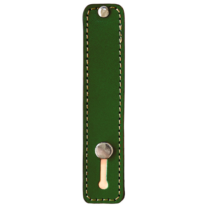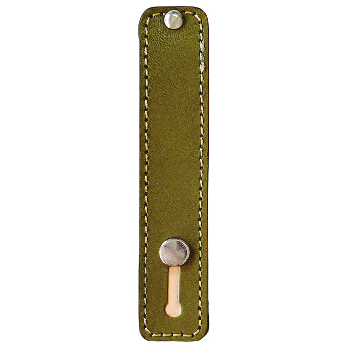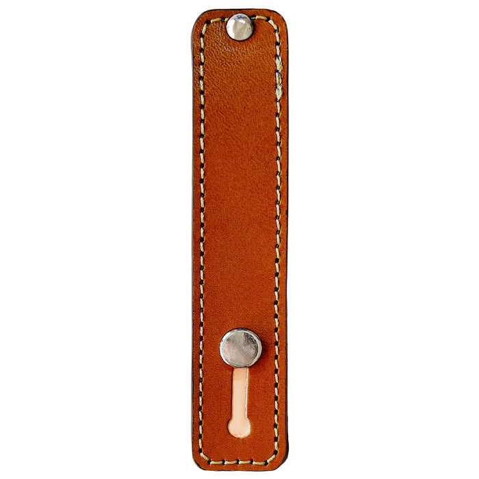 指を通して落下防止ベルトとしてお使い頂ける、こだわり親父の本革スマホバンドです。