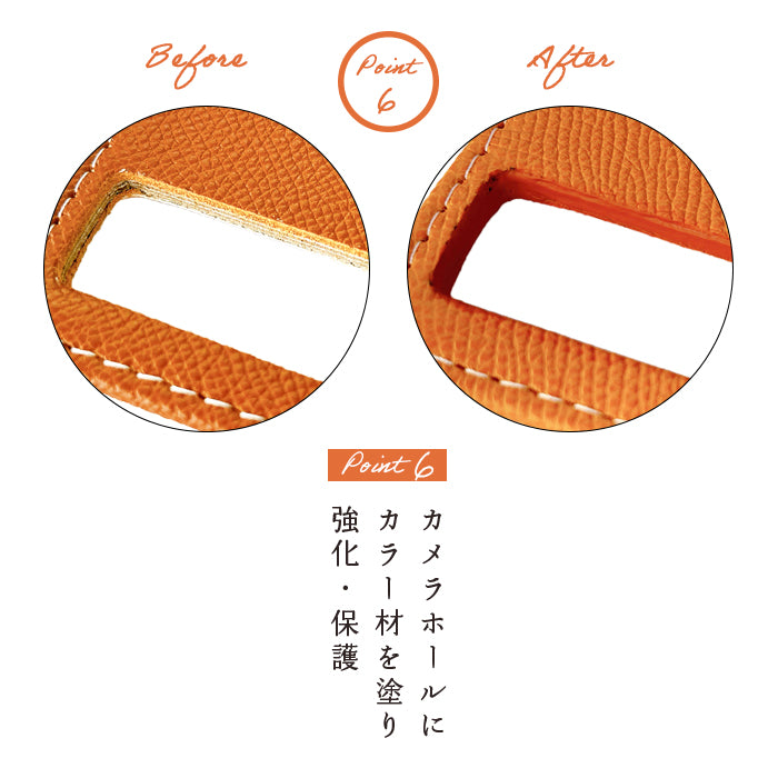 内側のケースに合わせてカメラ穴・フラッシュ穴等を一点一点、手作りであけております!